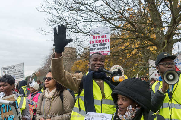 People carry the MfJ banner
