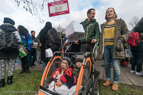 A TV cameraman has tried to get the protesters to line up for a photograph,
