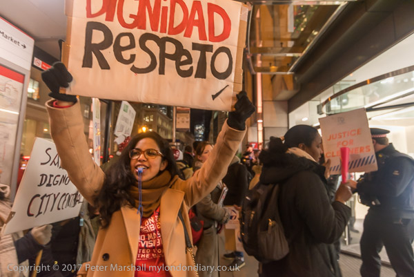 'Dignidad, Respeto' needs little translation. The cleaners are demanding