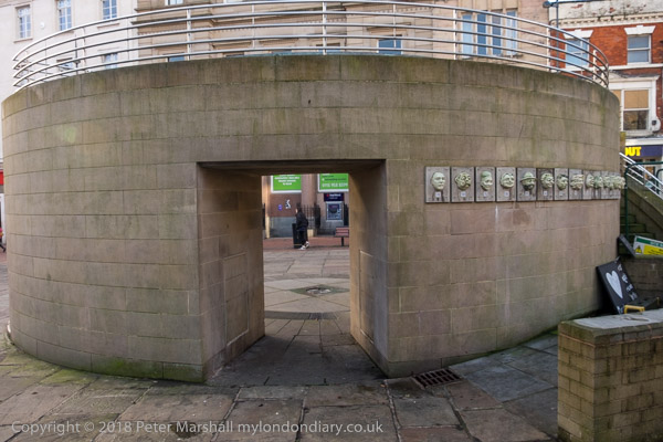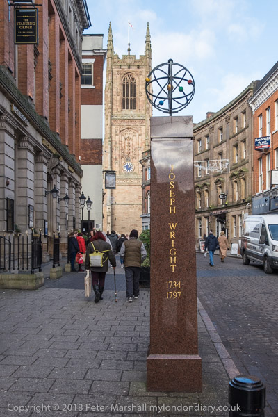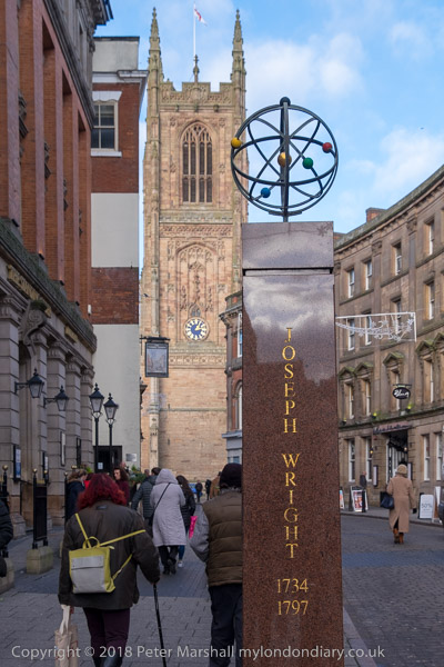 Memorial to Joseph Wright, Derby's famous painter, though relatively