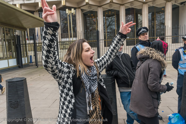 Some of the protesters went to shout at the lone Zionist, telling