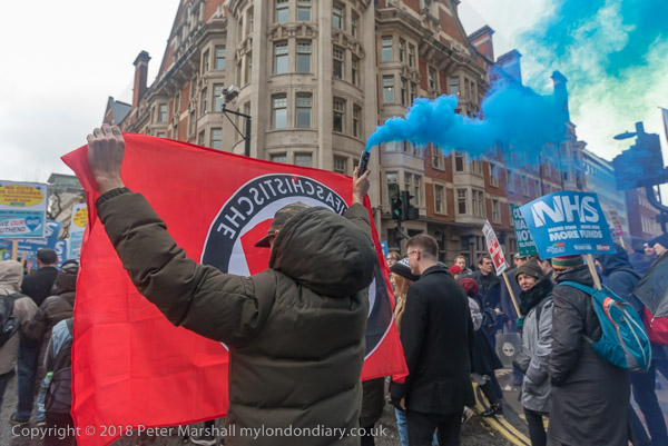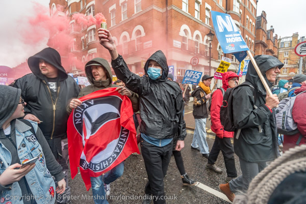 Anti-fascists set off a smoke flare
