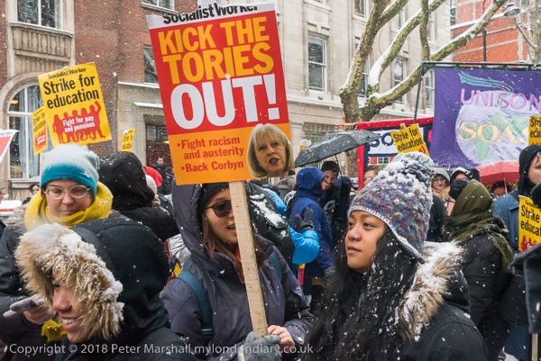 'Our Austerity, Their Prosperity. Stop Outsourcing, Respect All Workers'
