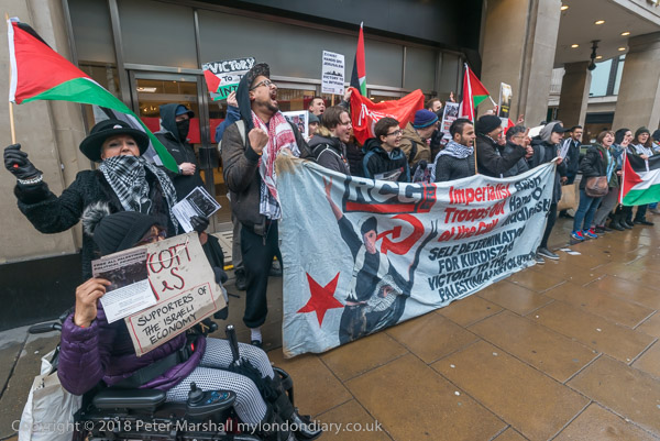 A campaigner speaks about Palestine in front of the banner 'Zionism