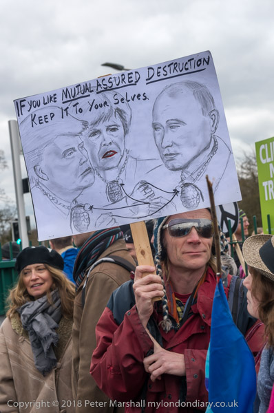 a poster showing Donald Trump, Theresa May and Vladmir Putin