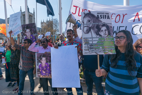 Protesters held posters about Asifa Bano, and 8 yr old Muslim girl