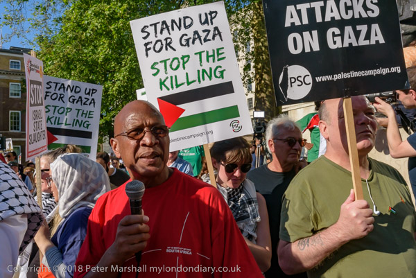 The platform had a large poster from Friends of Al-Aqsa with the message