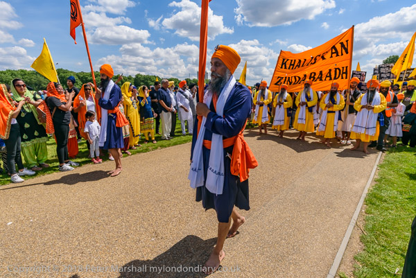 Thousands of Sikhs met in Hyde Park to march through London to Trafalgar Square in memory of the 1984 Indian Army attack on the Golden Temple in Amritsar where thousands of Sikhs were massacred, and the government encouraged mob killings following the assassination of Indira Gandhi later that year for which the killers have never been brought to justice.
