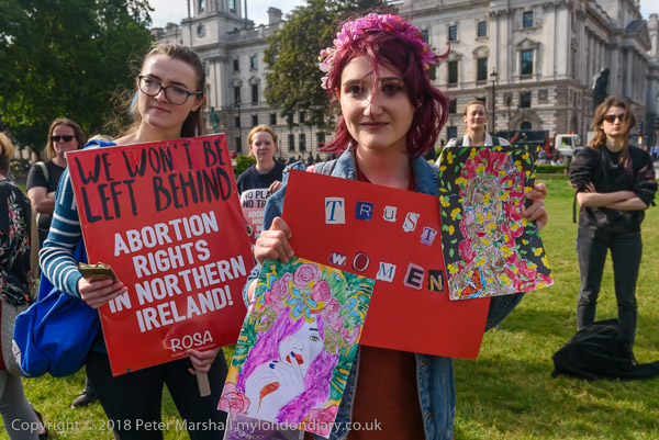 Abortion Rights protesters called for the Government to end the human rights violation against Northern Irish women by legalising abortion in a protest at Parliament.