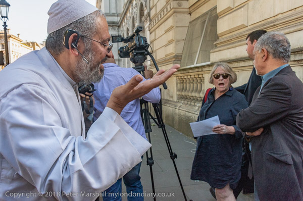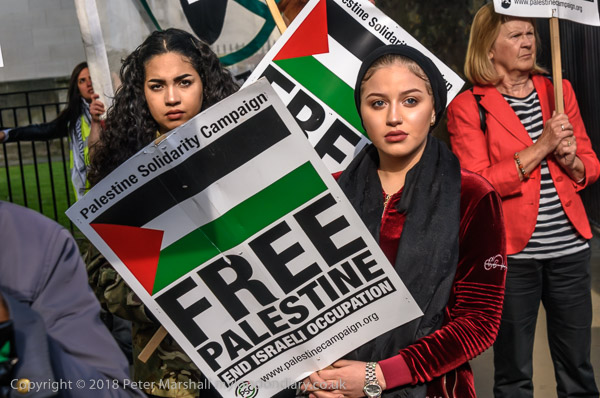 Protesters came to Downing St on the National day of solidarity actions for the Great Return March in Palestine to call for freedom for Palestine and an end the the killing of Palestinians.