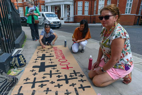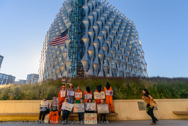 London Guantánamo Campaign hold a vigil on the UN International Day in Support of Victims of Torture, as they have done every year since 2010. This year they chose to hold it in front of the US Embassy in Nine Elms, because of the continuing use of torture by the US and the complicity of UK security services in this.