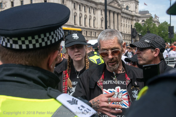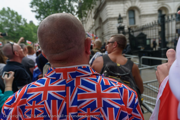 The stewards there were attempting to move the crowd away towards the stage where the rally was beginning. Throughout the march the crowds were chanting and singing for Tommy Robinson, a man who pleaded guilty to contempt of court and whose actions could have led to a trial being stopped.
