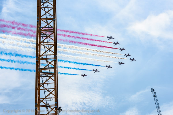 obscure the sky. The display ended with coloured smoke trails in red, white