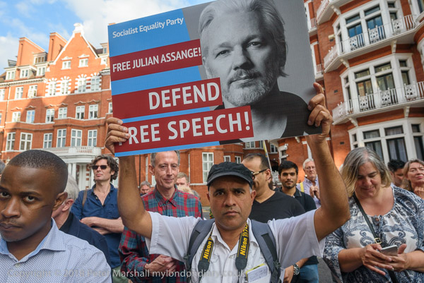 Several thousand gather in Trafalgar Square to march to a rally in Whitehall demanding the release of Tommy Robinson, jailed for contempt of court.
