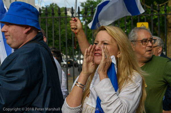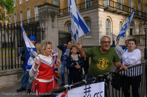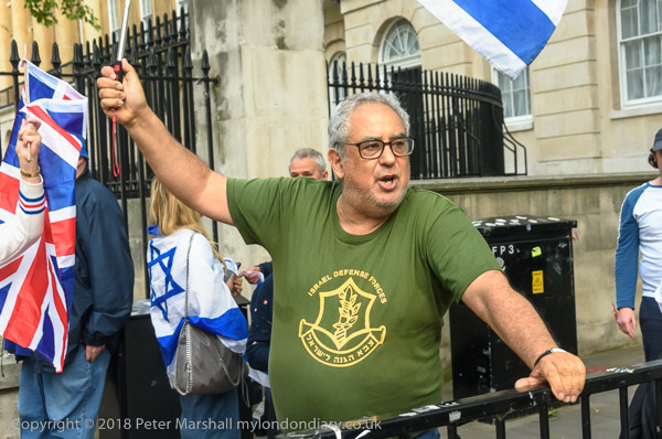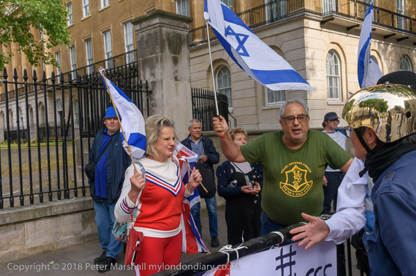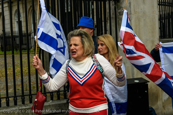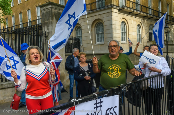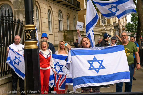 Zionists come with Israeli flags to shout abuse and to defend the