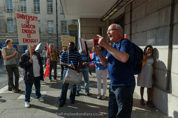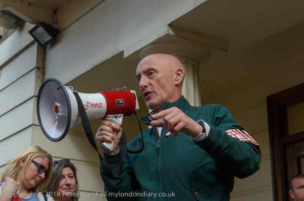 Jason Moyer-Lee of the IWGB on the steps of Stewart House introduces