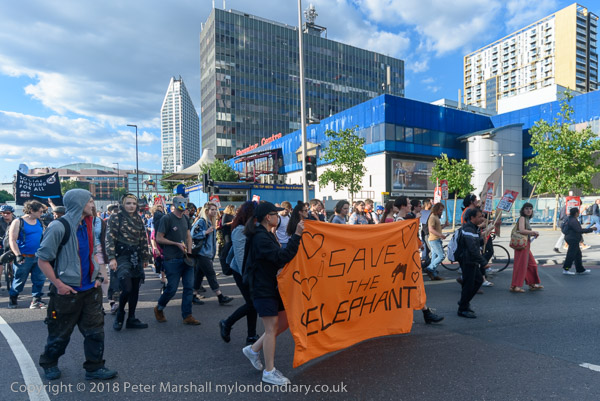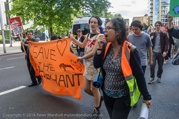 THe march moves off behind the 'Save the Elephant' banner