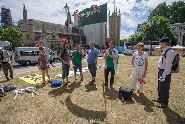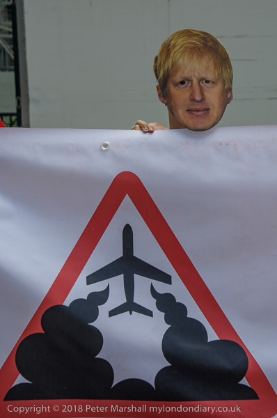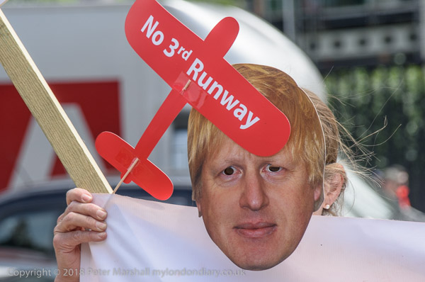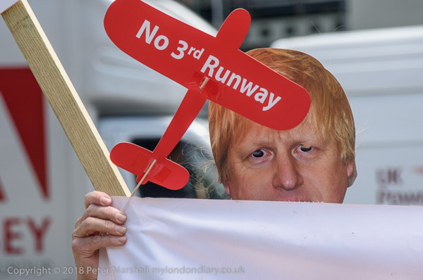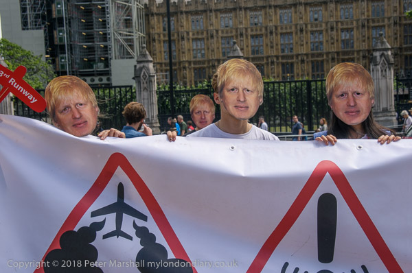Several protesters wear Boris Johnson masks. The MP from Uxbridge