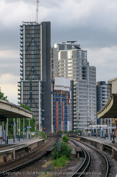 The view from Vauxhall station with lines towards Waterloo dominated by