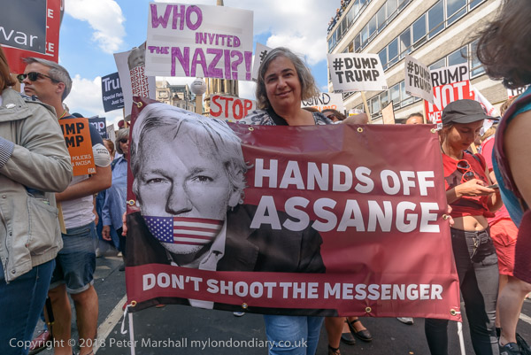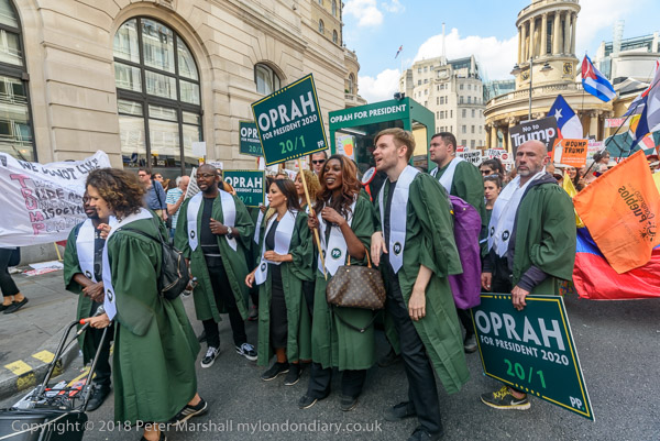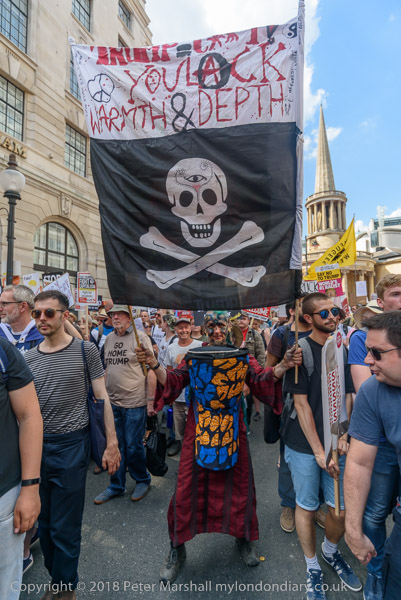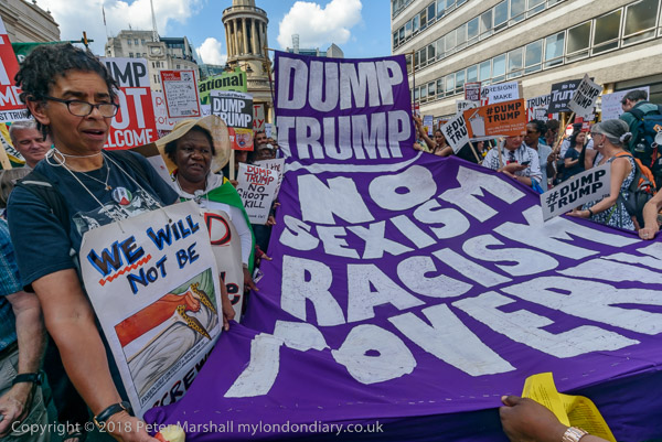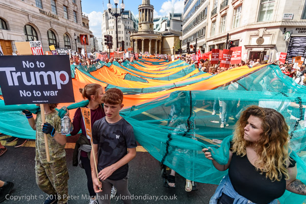 'TRUMP: CLIMATE GENOCIDE' - the giant banner is carried horizontally.