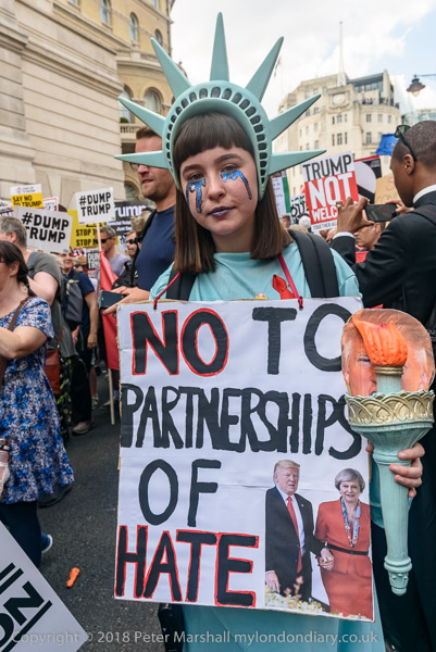 A statue of liberty with the messge 'No to Partnersips of Hate