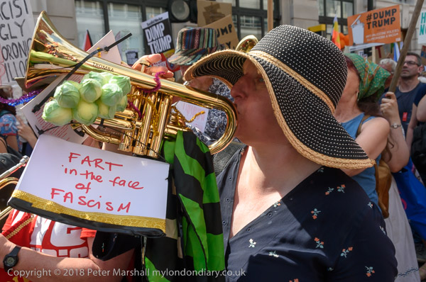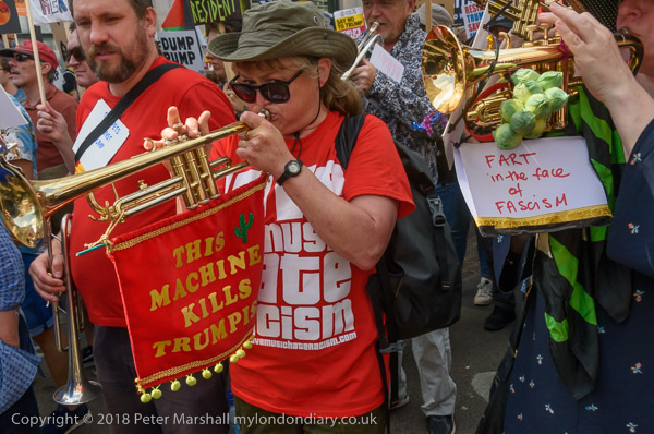 'This Machine Kills Trumpists' a refernce to Woody Guthrie's guitar