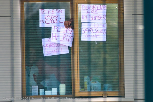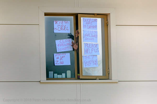 and others put up notices calling for help, and for Yarl's Wood to