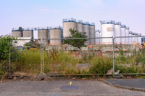 Tanks at IBL Bulk Liquids on Lime St seen across the River Hull from