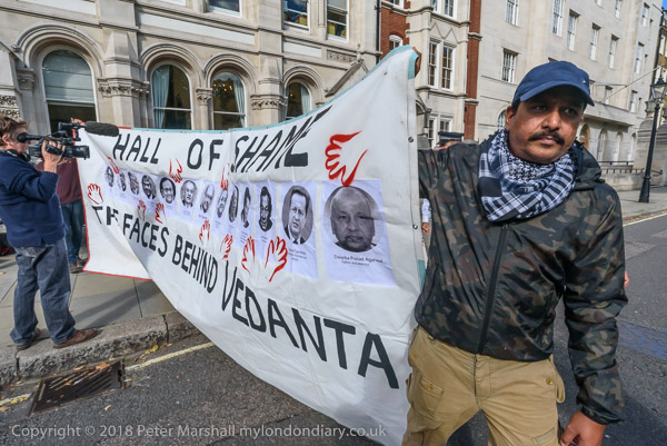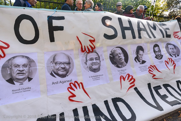 Faces on Foil Vedanta's 'Hall of Shame' banner include Anil Agarwal