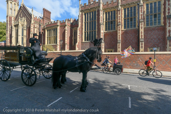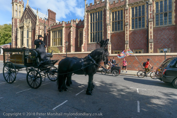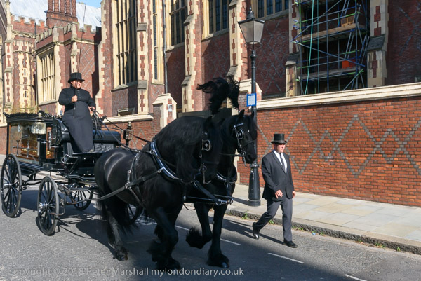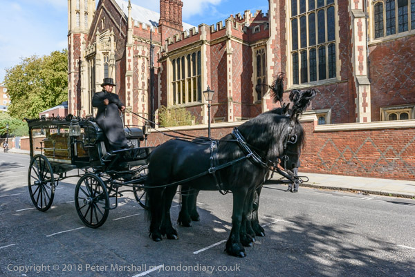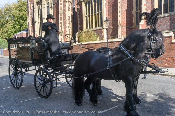 The horse-drawn hearse arrives for the procession