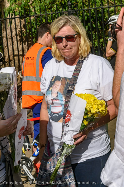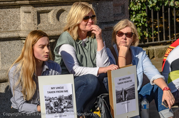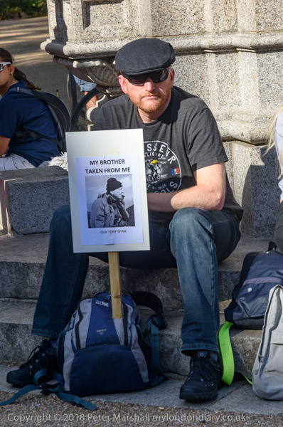 Members of Tony Spink's family had posters with his picture. He was