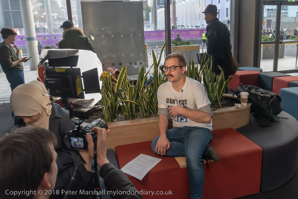 One of the activists geives a media interview