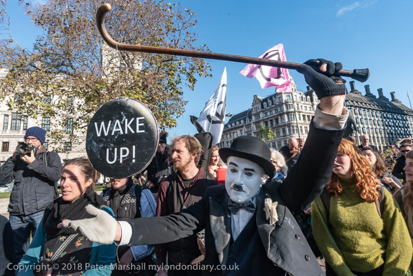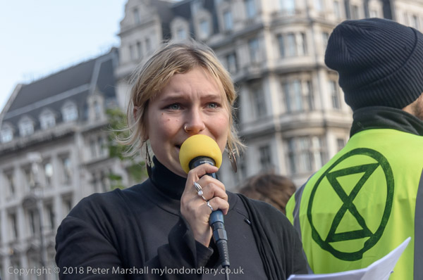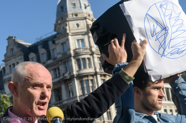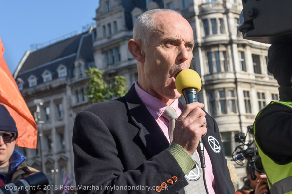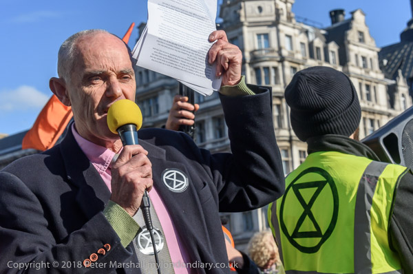 Environmental activist Donnachadh McCarthy holds up a diagram to