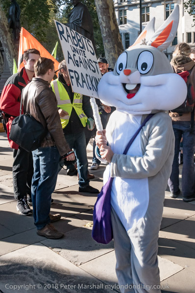 People and rabbits gathered near the statue of Millicent Fawcett