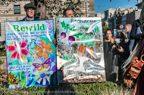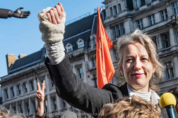 and a bear, before moving onto the grass of the square for the rally