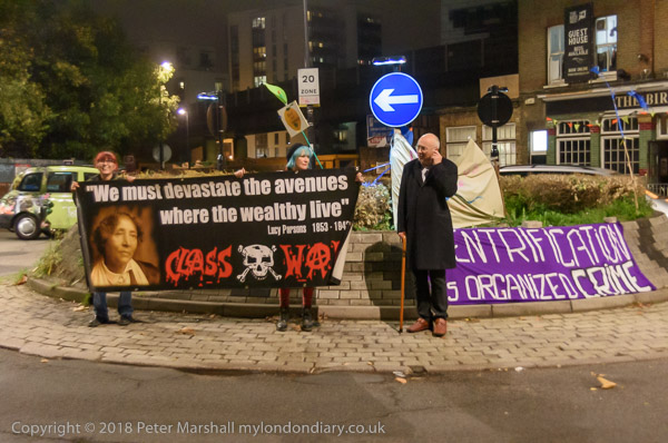 and Class War's Lucy Parsons banner 'We must devastate the avenues