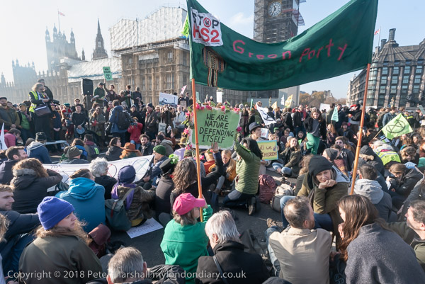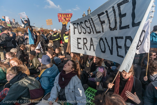'Rebel For Life' the Extinction Rebellion main banner across the road