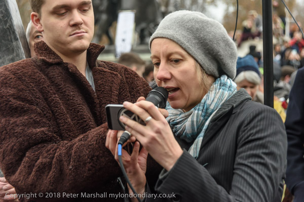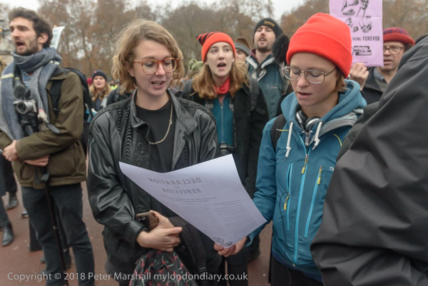 XR's Gail Bradbrook reads out a letter calling on the Queen to get