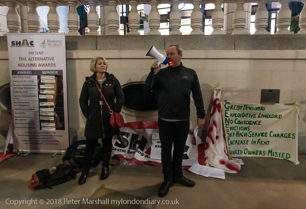 from Unite Housing Worker's Branch after the awards were madeSHAC Social Housing Action Campaign) hold their annual Alternative Housing Awards outside the National Housing Awards which were taking place at etc.venues 155 Bishopsgate, part of the Broadgate development.
