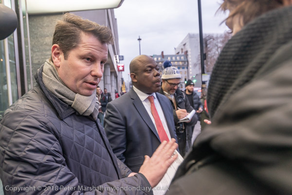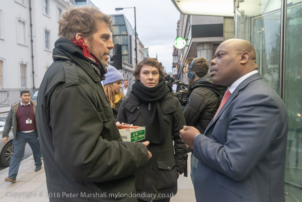 The protesters talk with people from the landlords outside their offices
