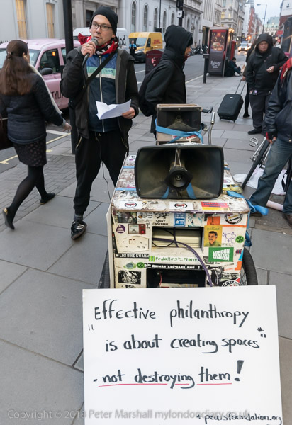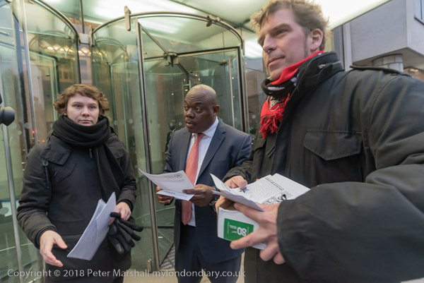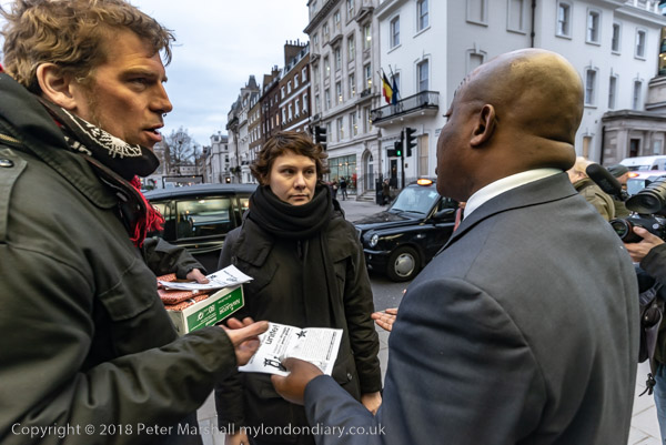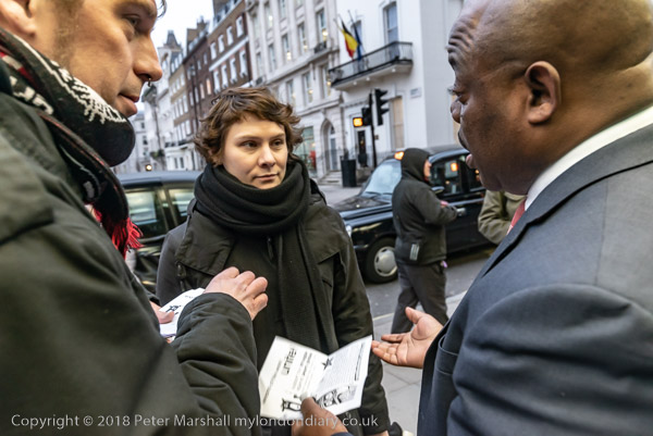 The protesters are talking to people and handing out leaflets