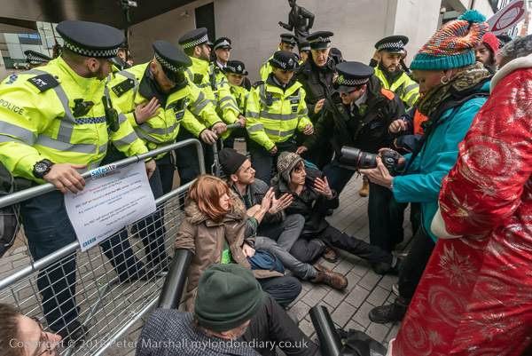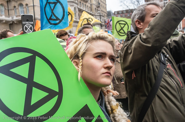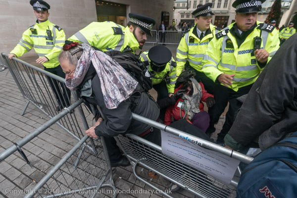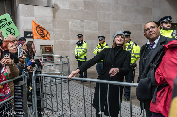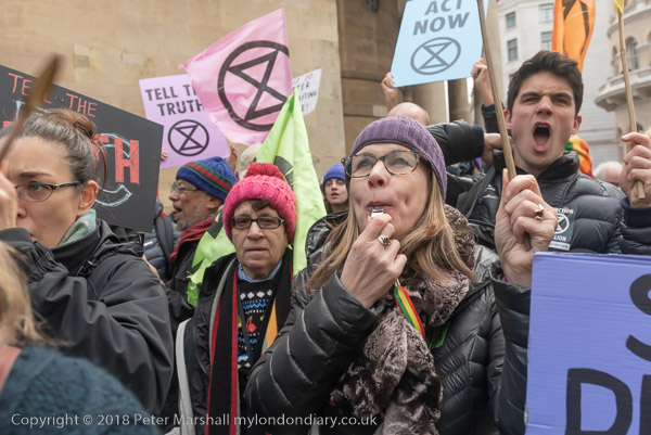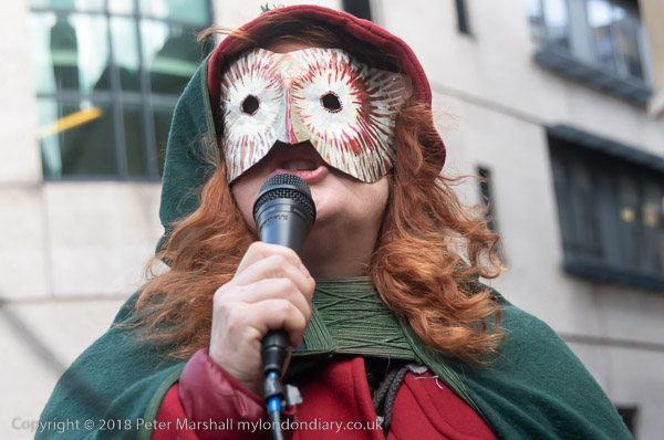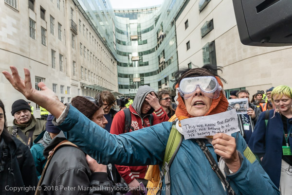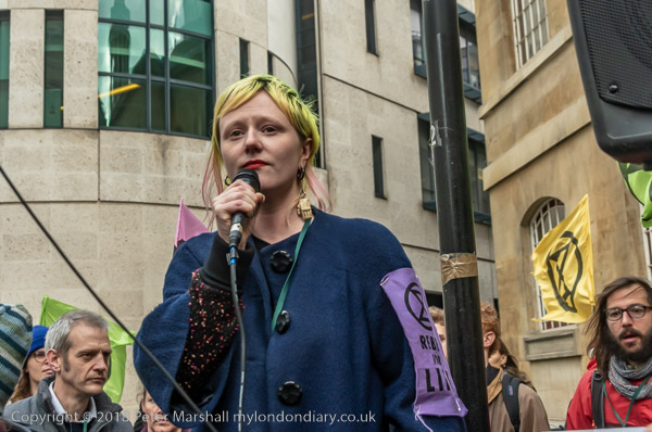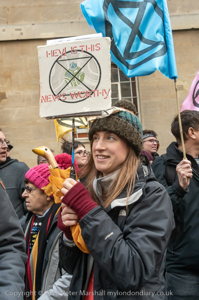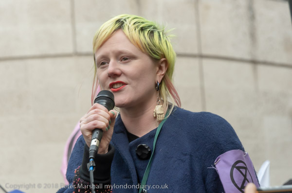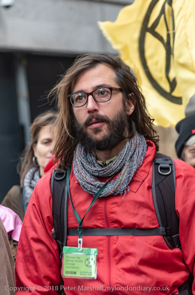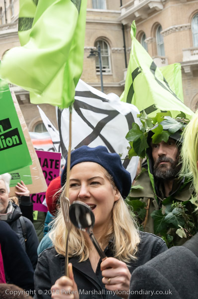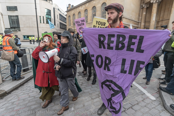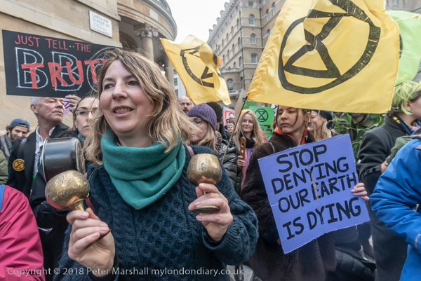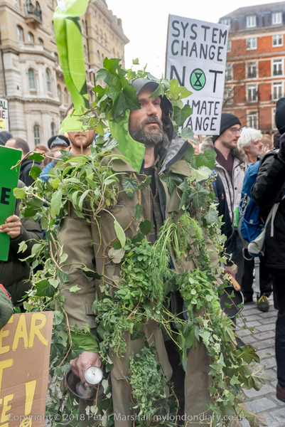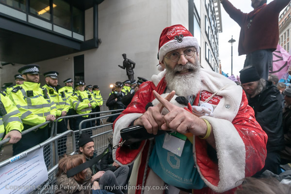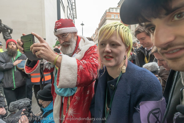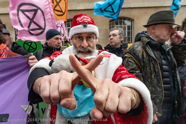 Sustaina Claus crosses fingers for the XR sign - Extinction Rebellion