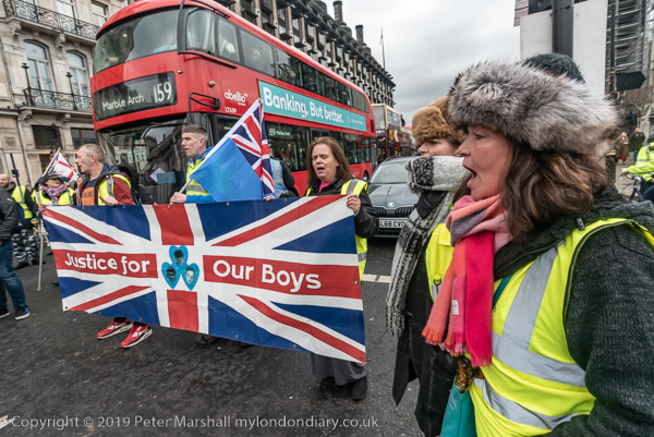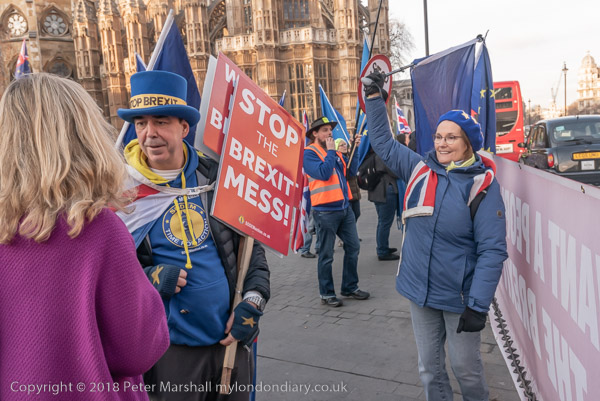 Among the pro-Brexit campaigners were again some extreme-right 'yellow jackets', most of whom were fairly subdued. One man led a few others in shouting insults at SODEM protesters rather than and sensible protest, but some other Brexiteers had come to support Brexit rather than cause trouble.
