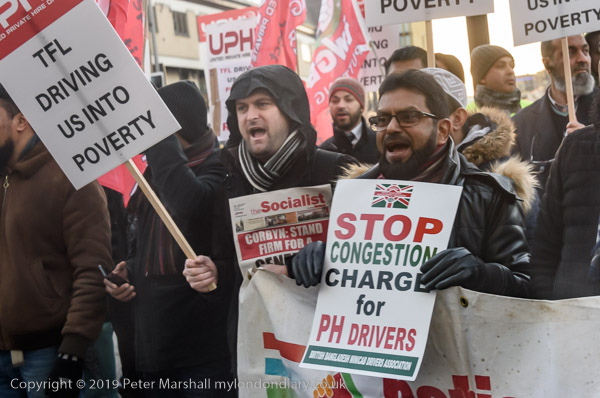 Private Hire drivers blocked the road outside Transport for London in a third protest against the congestion charge being unfairly levied on them.
