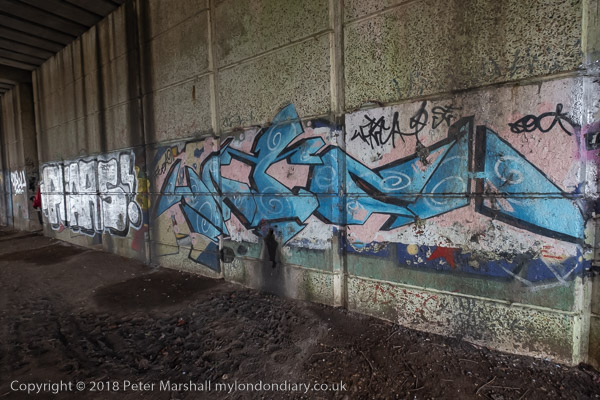 Graffiti on the viaduct and Windsor Castle. Helch is apparently a"word