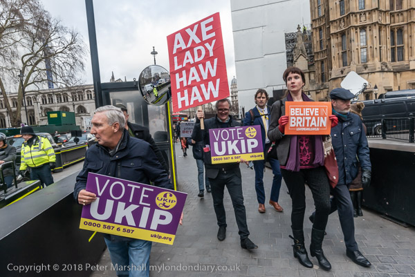 UKIP supporters with the message 'Axe Lady Haw Haw'