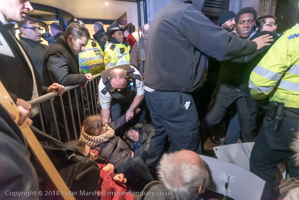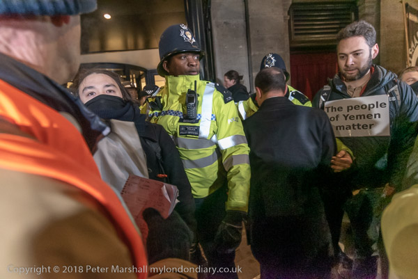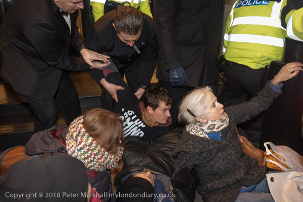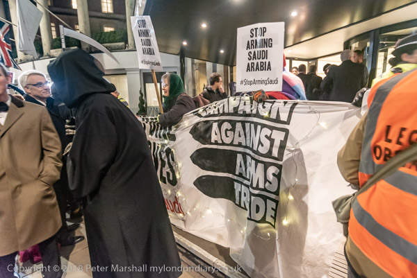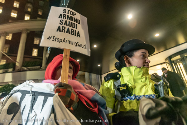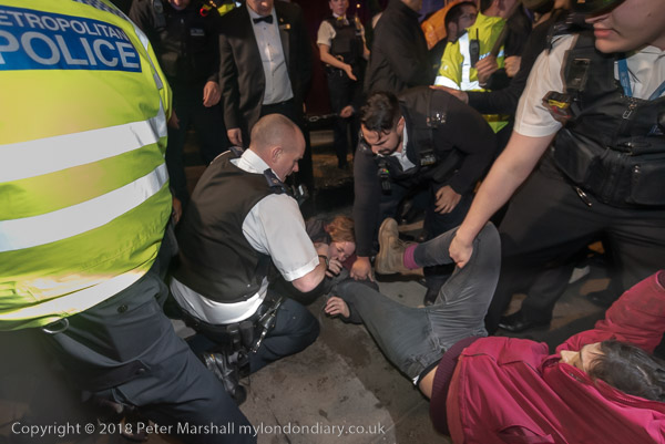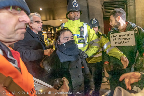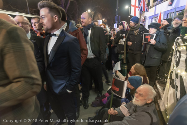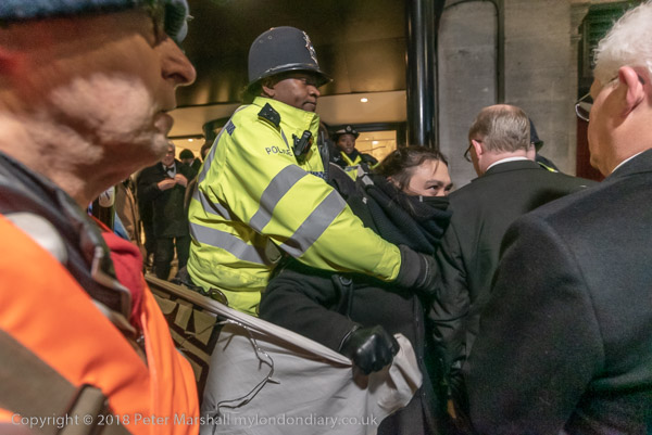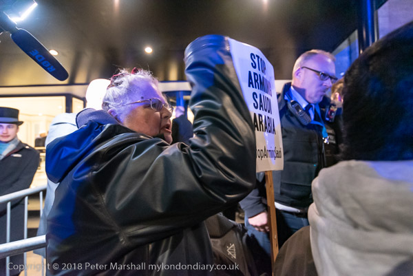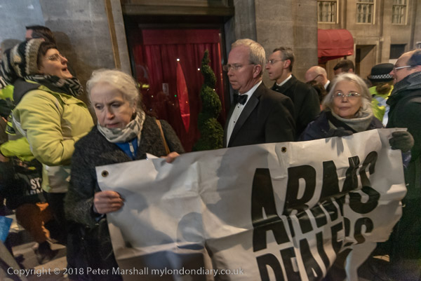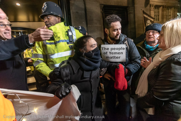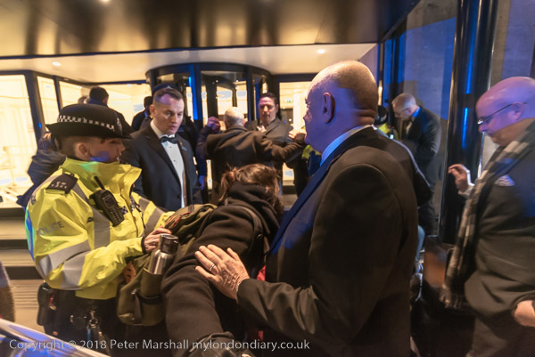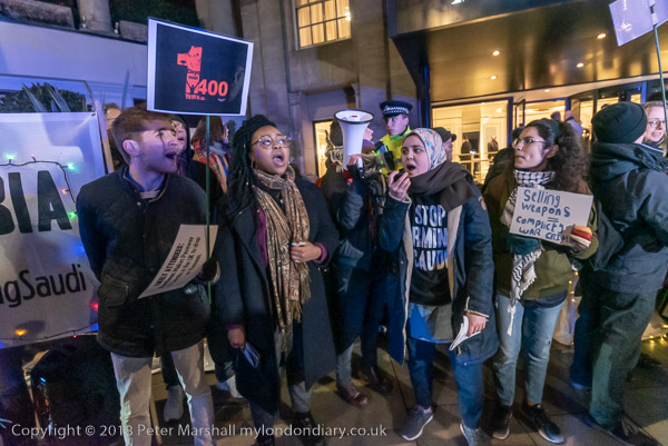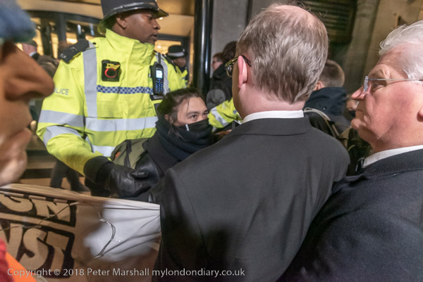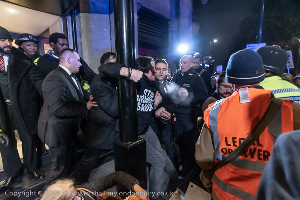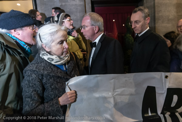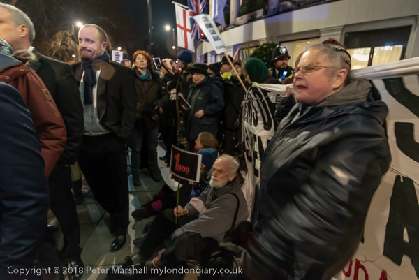 Other protesters keep up the noise, shouting "Blood on Your Hands!"