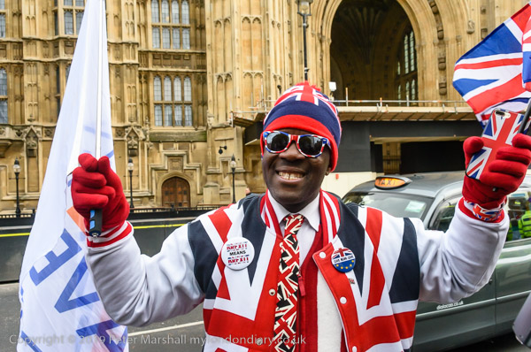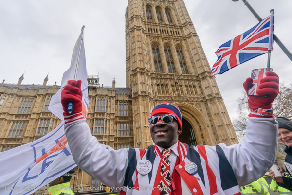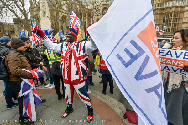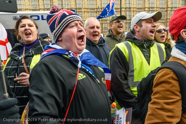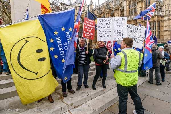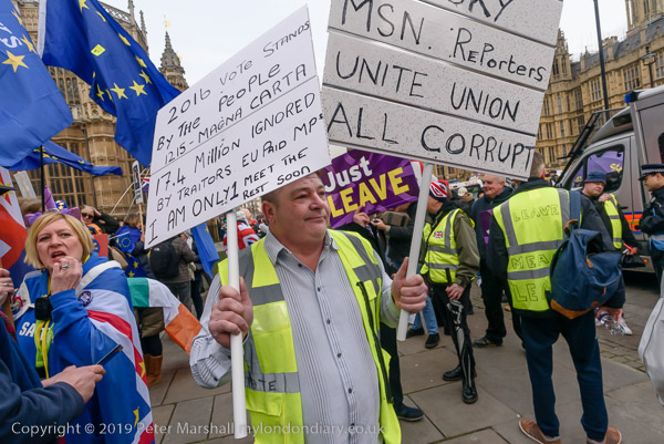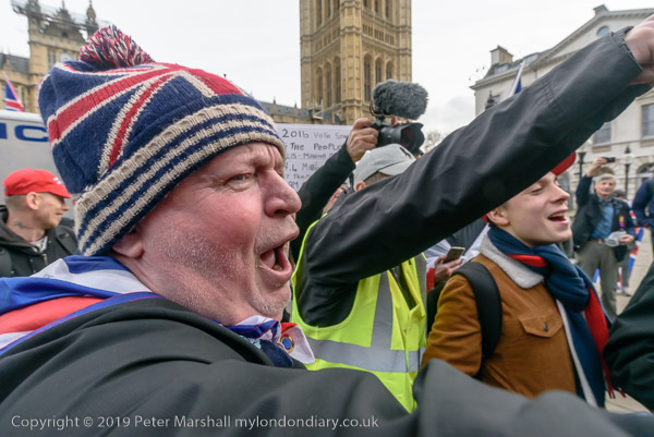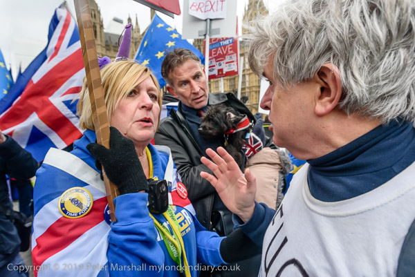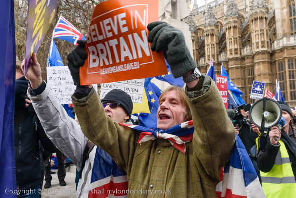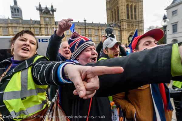 A loud man in a yellow jacket comes to shout insults at the pro-EU