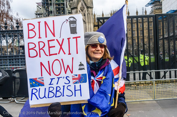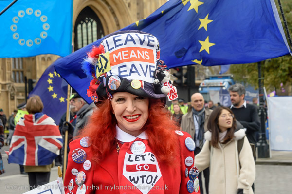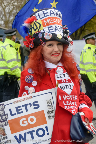 A 'Leave Means Leave' campaigner protests for a deal on WTO terms