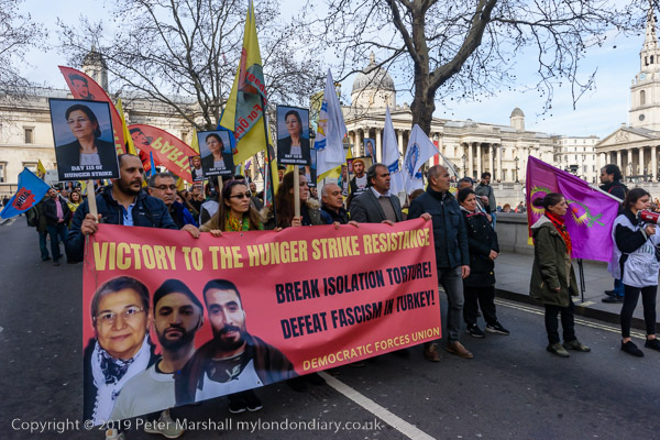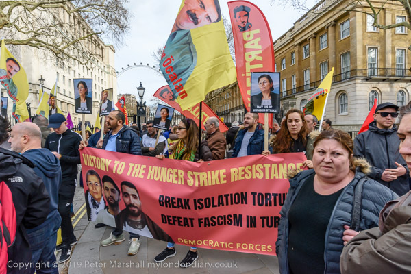 Many hold flags showing Kurdish leader Ocalan, in solitary confinement